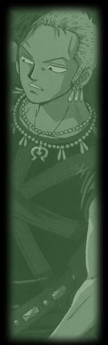 Zoro left his hometown to search for a man, 'Hawk Eyes' Mihawk Dracule. Mihawk was formerly one of the greatest pirates in the world and is a current member of The Seven Armed Seas; he is recognized as 'The Strongest Swordsman in the World'. Obviously Zoro’s intentions were to locate Mihawk and beat him in a duel then declare himself 'The Strongest Swordsman in the World' making his goal and oath a reality. There was just one problem, Zoro couldn’t find him. Wishing to temporarily put his quest on hold, Zoro attempted to return to his hometown. But there was still a small problem as new fans of One Piece will surely come to realize, Zoro has no sense of direction whatsoever. He couldn't find his way out of a shoebox. So, Zoro collected bounties in order to survive while he worked his way home and the nightmarish stories about him came to be because Zoro is indeed a demon in battle. Long time fans know this to be true in more ways than one.Besides his lack of any sense of direction, another running gag with Zoro is his constant sleeping. A famous line of his is, "Huh? Morning already?", usually uttered after an extremely chaotic scene which he managed to nap through. Zoro loves to sleep. Just as Luffy needs red meat to recharge him, Zoro just needs a few winks....or alcohol of some kind.